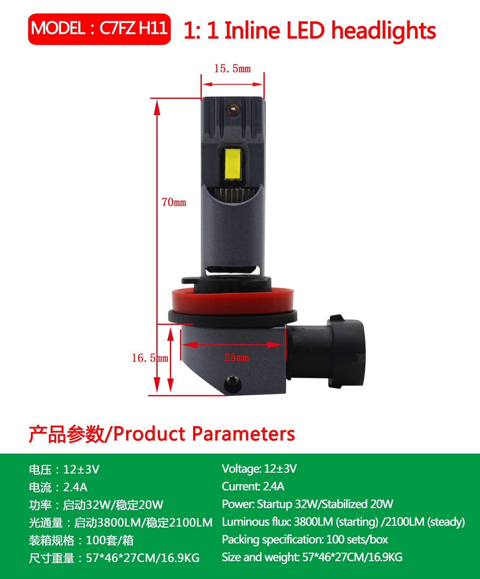 – Extreme power: 45 Watts and 7650 raw Lumens (per bulb) accompanied by a high-tech design.