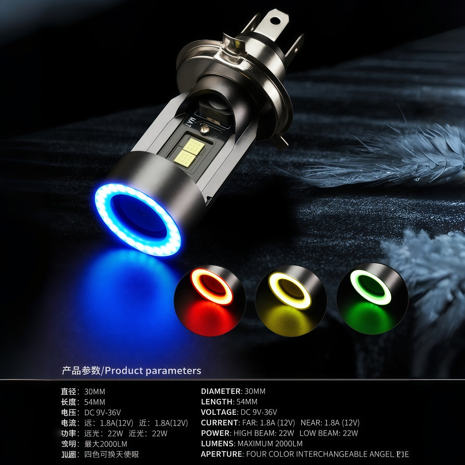 This motorcycle headlight is equipped with LED angel eyes, not only delivering a striking lighting effect, but also serving as a powerful warning signal to oncoming vehicles or in adverse weather conditions, effectively reducing the risk of accidents.Product Details